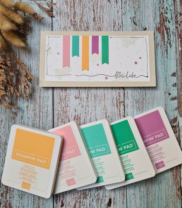 Neulich wurde es bunt auf meinem Basteltisch und ich habe einen ganzen Schwung Stempelkissen zusammengesucht.Schaut…