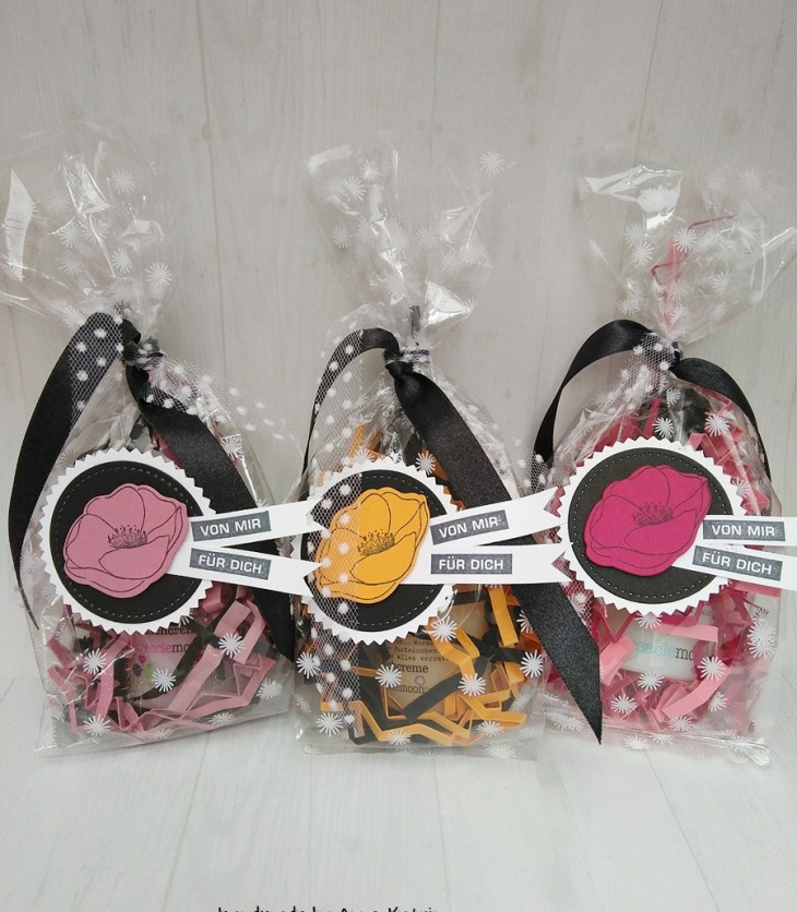 Einen Schwung Goodies habe ich neulich gewerkelt, und zwar in diesen Farbkombinationen (rokoko-rosa, mangogelb und…